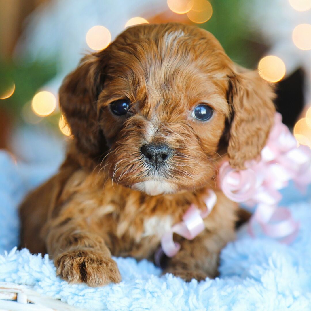Meet Lori, a beautiful 8-week-old female Cavapoo with a soft red coat and a sweet, affectionate personality. Her dad is a Poodle, and her mom is a Cavalier King Charles Spaniel, giving her the perfect blend of intelligence, gentleness, and irresistible charm. Born on September 20, Lori is a lovely Virgo pup ready to bring joy, companionship, and comfort to her forever family.