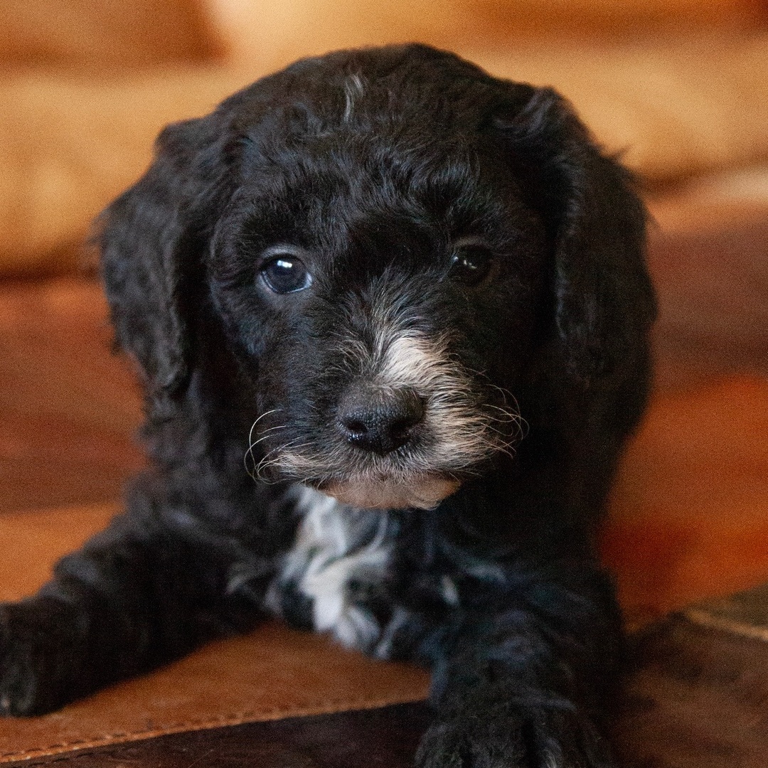 Meet Ace, an adorable 8-week-old male Goldendoodle puppy with a shiny black coat and a loving, playful personality. Born on September 17, Ace is a sweet Virgo pup ready to bring joy, cuddles, and fun into your home. With Goldendoodle parents, he carries the perfect blend of intelligence, loyalty, and gentle temperament.