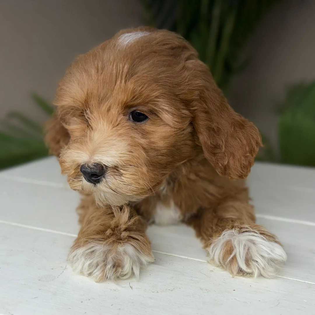 Meet Antonia, an elite apricot Goldendoodle puppy with exceptional structure, personality, and temperament. At 7 months, she displays the highly sought-after traits of an F1b Goldendoodle puppy: hypoallergenic, low-shedding, intelligent, and remarkably affectionate. Her apricot coat is soft, luxurious, and easy to maintain with regular grooming, making her ideal for allergy-sensitive homes.