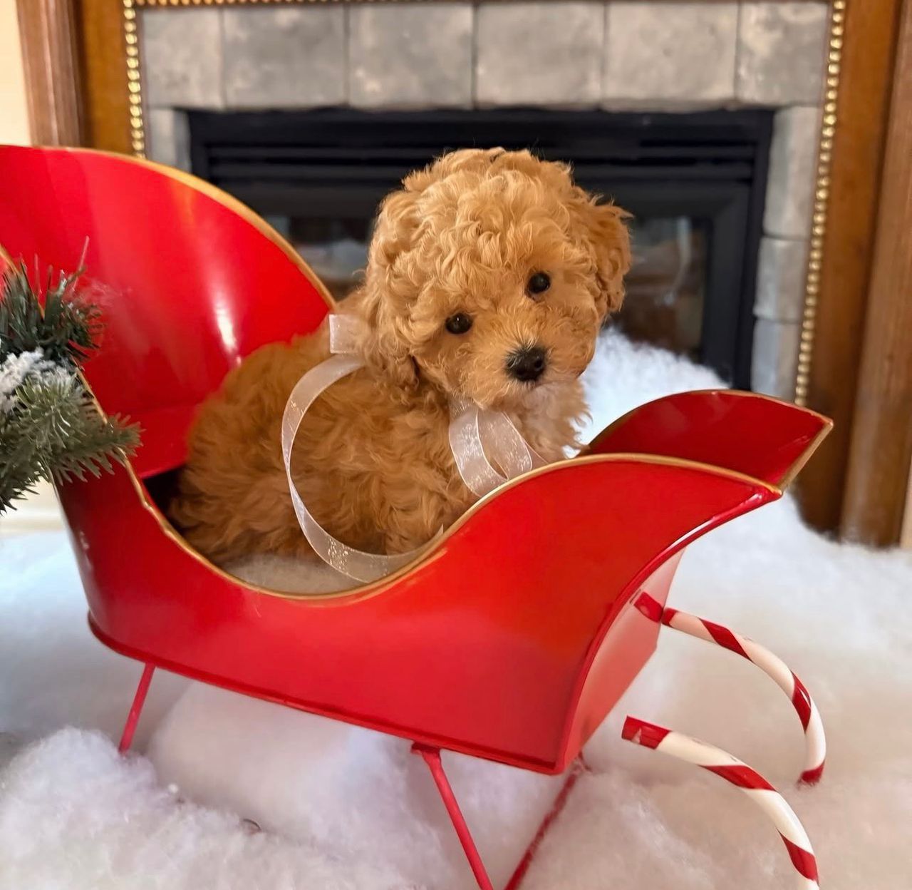 Meet Stella, an adorable 8-month-old female shiny brown Toy Poodle with a playful, affectionate personality and the classic hypoallergenic toy poodle coat that families love. Stella is a highly socialized toy poodle puppy, carefully raised with love, structure, and early training to ensure a smooth transition into her forever home. Her rich shiny brown coat, expressive eyes, and compact size make her one of the most charming brown toy poodle puppies available today.